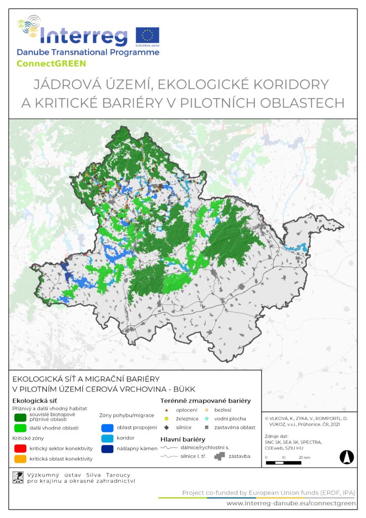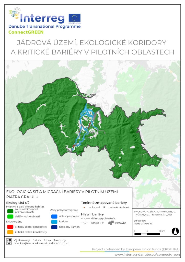 V rámci projektu byla vybrána 4 specifická pilotní území, ve kterých probíhal soustavný terénní monitoring migračních bariér. Na základě sebraných dat byla zpřesněna a upravena navržená ekologická síť a detailně zaznamenány migrační bariéry jako dálnice a rychlostní silnice, silnice první třídy i nižších tříd, zástavba, vodní plochy, železnice, bezlesí či oplocení. Analýzou migračních bariér ve vztahu k migračním koridorům tak byly potvrzeny či zpřesněny také kritické zóny migrace, jejichž management je zásadní k zachování alespoň minimální prostupnosti území. Vznikl tak detailní podklad k ochraně konektivity krajiny v zájmových oblastech.