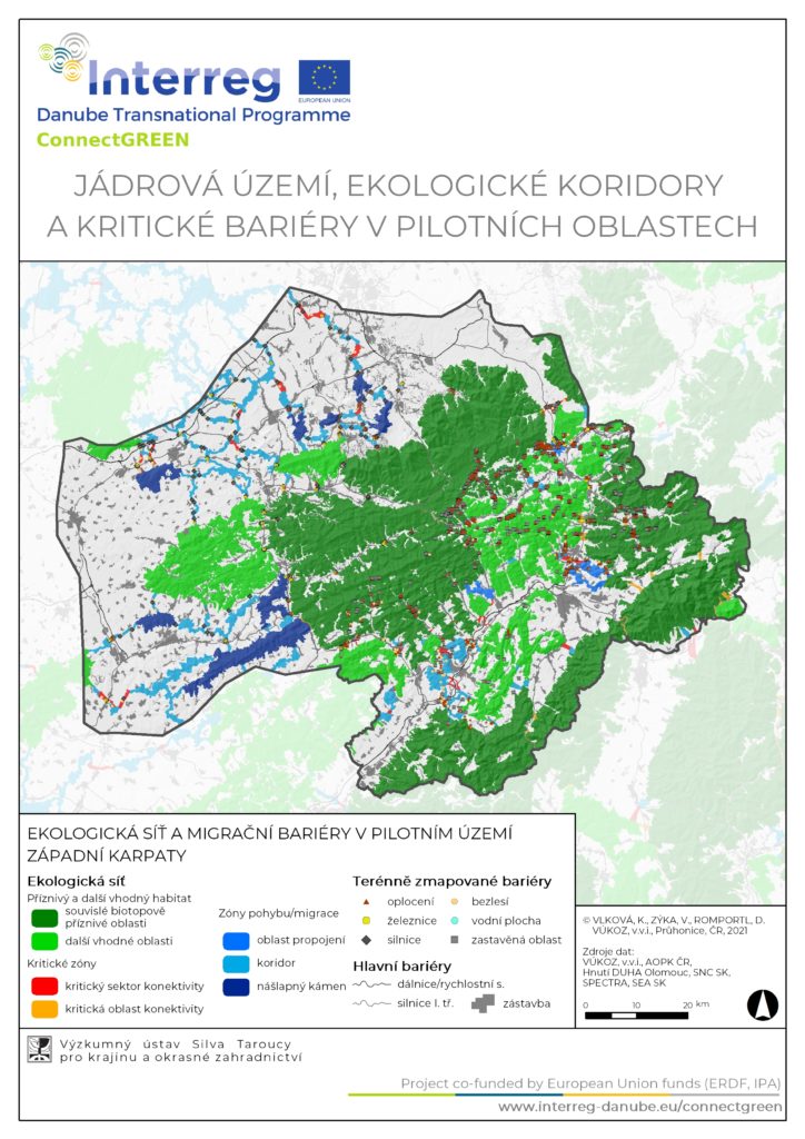 Postupující fragmentace a ohrožení konektivity krajiny v důsledku neustálého rozvoje dopravní sítě jsou patrné ve všech částech evropského kontinentu. Poslední relativně nezasaženou oblastí přírodních biotopů jsou Karpaty. I zde však probíhá plánování a realizace velkých projektů rozvoje dopravní infrastruktury, které ohrožují dosud nefragmentované rozsáhlé lesní biotopy důležité především pro přežití karpatské populace velkých šelem. To může být problémem hlavně v nejzachovalejší východní části Karpat, kde doposud v podstatě neexistují nástroje k ochraně ekologické konektivity. V rámci projektu se nám na základě unifikované metodiky podařilo navrhnout přeshraniční síť vhodných biotopů propojených migračními koridory a identifikovat kritické zóny konektivity v místech, kde jsou zvířata nucena překonávat významné migrační bariéry. Při vytváření ekologické sítě jsme především díky navržení adaptované klasifikace skladebních prvků zohlednili heterogenní charakter karpatské krajiny a vyvinuli tak inovativní základnu pro ochranu konektivity biotopů a management krajiny celého karpatského ekoregionu. Všechny komponenty ekologické sítě budou začleněny do procesů a dokumentace územního plánování ve všech zainteresovaných zemích a reálně tak přispějí k ochraně konektivity přírodních biotopů napříč Karpaty.